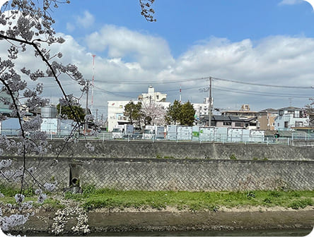 本社工場近くには荒川が流れ、四季折々の自然を感じることができます。